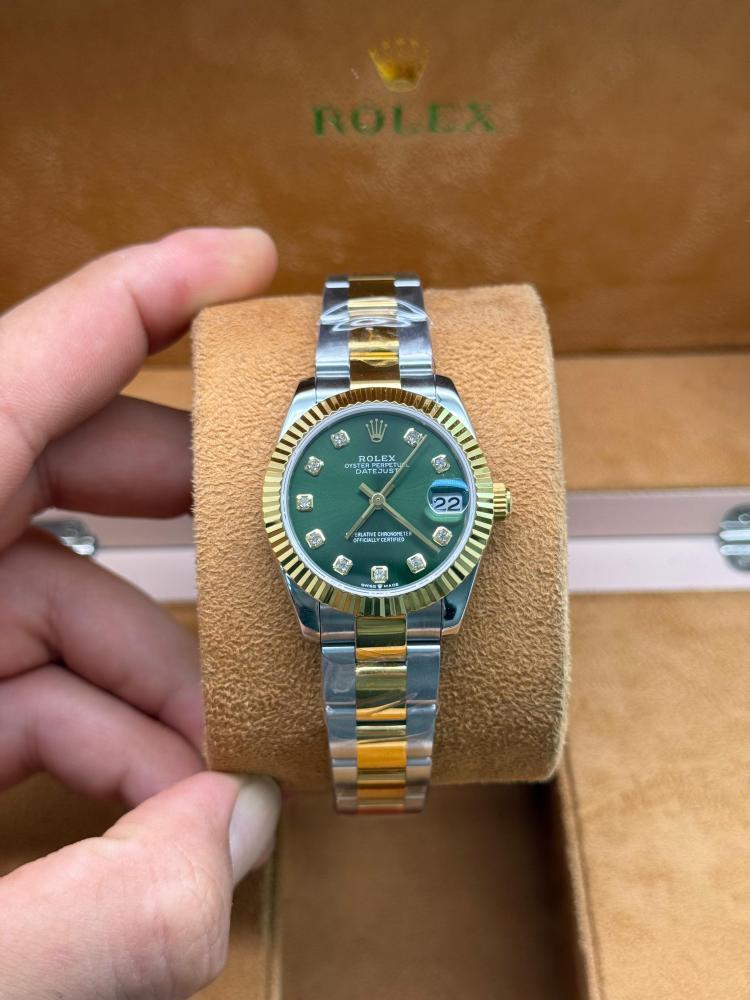 بتصميم كلاسيكي عمره ما يَعدّي، ساعة رولكس ديت جست النسائية تجي بقياس أنيق (31 مم) وجودة عالية كوبي سويس بمستوى مصنعية من الأعلى.