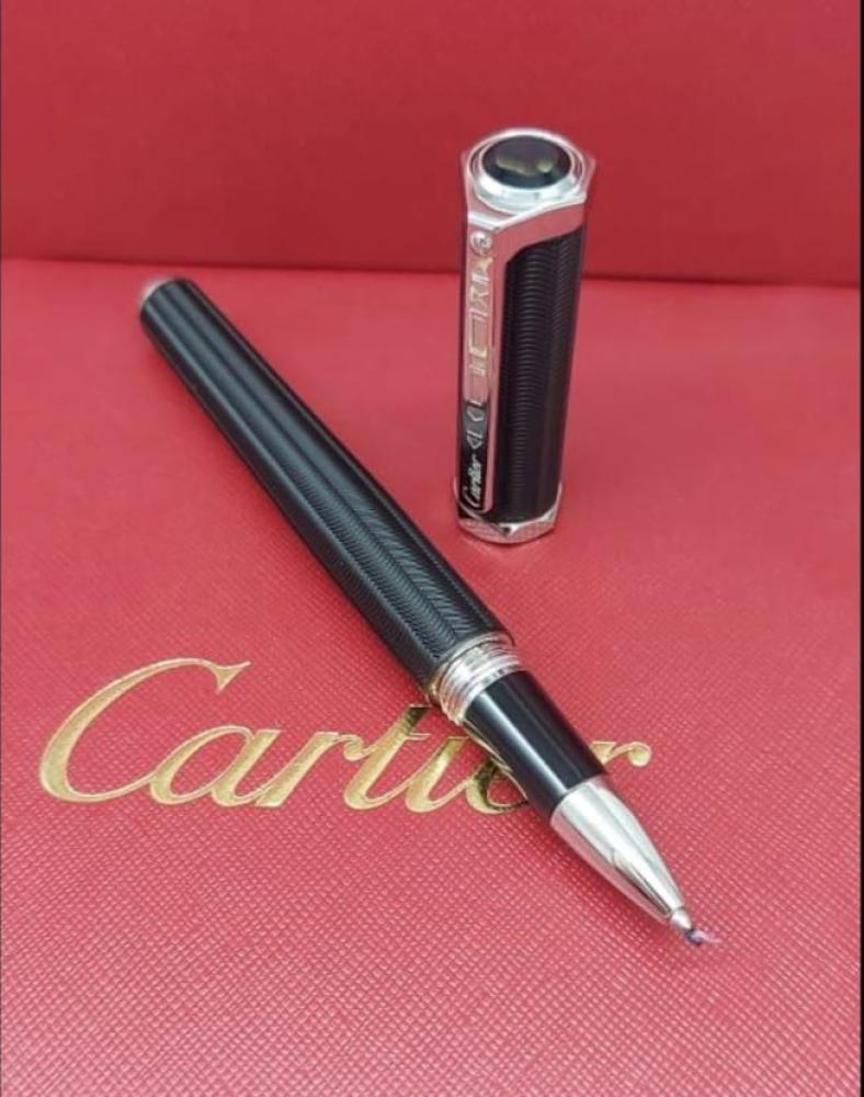 قلم أنيق يلفت النظر، بلون أسود راقٍ وتصميم يحمل بصمة كارتييه المميزة.